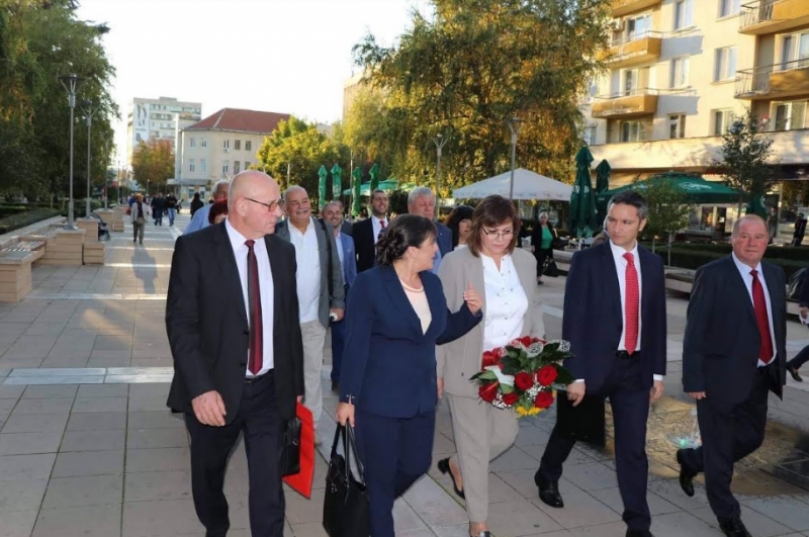 В града тя подкрепи кандидата за кмет на Ямбол Катя Георгиева и кандидатите за общински съветници и кметове на общини в областта. Нинова коментира, че екипът за Ямбол и областта на левицата е от опитни, но и от млади и енергични хора.