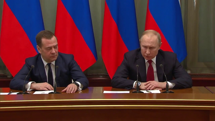 Медведев, дългогодишен съюзник на Путин и бивш президент, обяви оставката си в ефира на държавната телевизия, седнал до президента, който му благодари за работата.