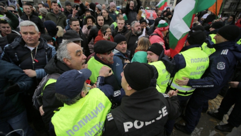Ресторантьори и хотелиери пробиха полицейски кордон и блокираха движението на бул. „Цар Освободител“ пред парламента в София. Стигна се до сблъсък на демонстрантите с полицията.