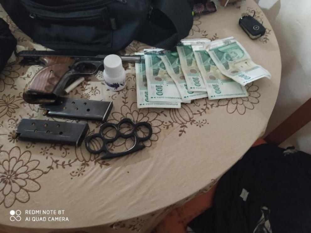 След задържането на 41 годишния извършител, осъществено със съдействието на служители от Специализираните полицейски сили към ОД на МВР, в обитаваната от него квартира, разположена на ул. „Княз Борис I”, са намерени и иззети дрехи и обувки със следи от запалителна течност, голяма сума пари, бокс и законно притежаван пистолет.