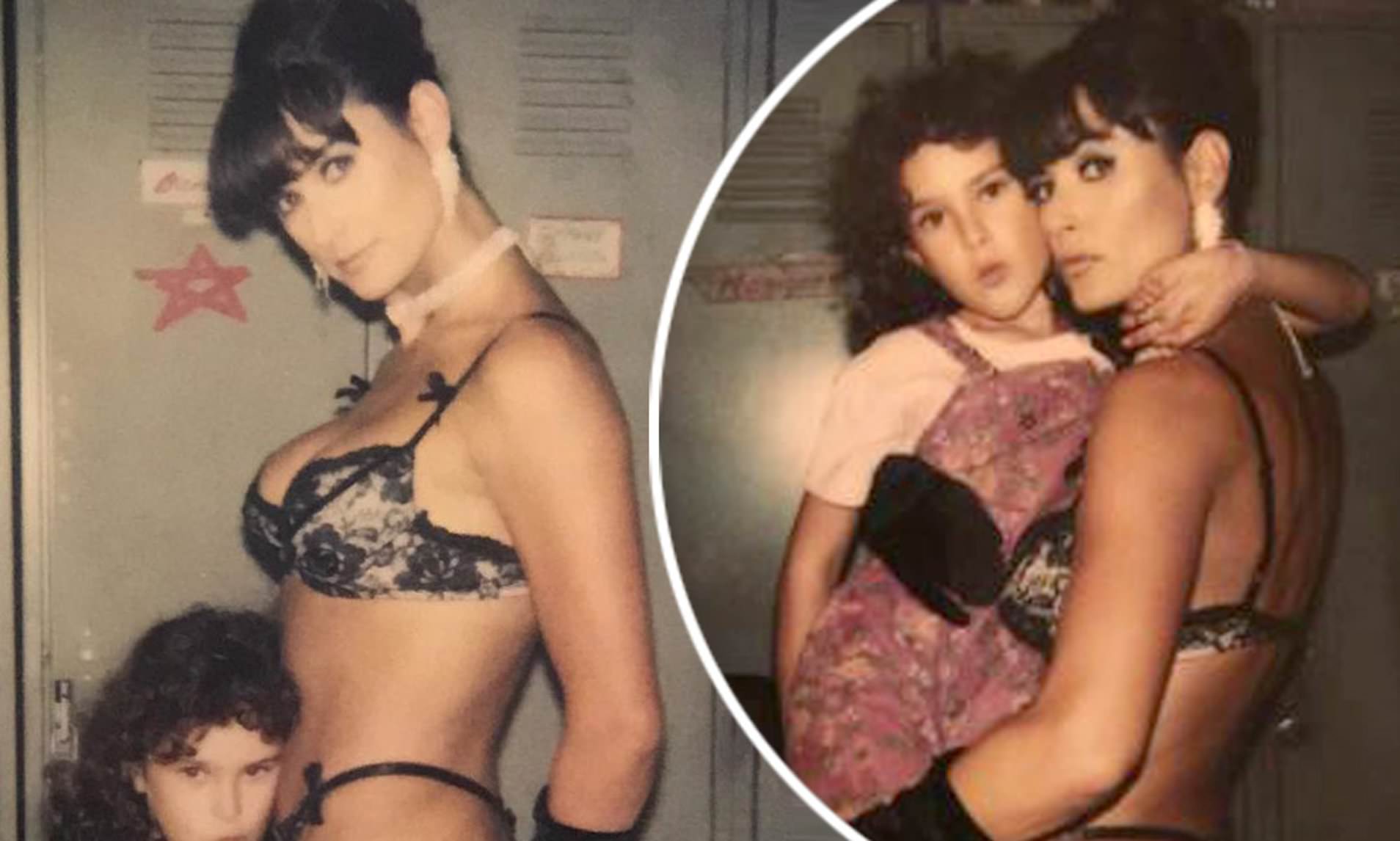 На един от кадрите звездата от „Призрак“ и „Стрийптийз“ е с близо 3 десетилетия по-млада и по бельо, а малката Румър я е гушнала през ханша и се притиска в корема й.