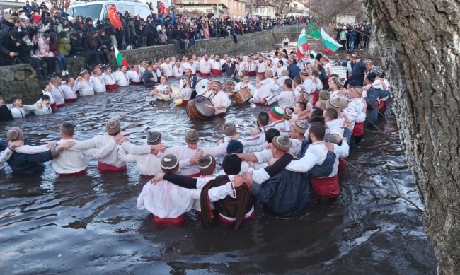 Мъжкото хоро в Калофер се изви въпреки, забраните. Десетки калоферци, а и гости от страната, влязоха във водите на река Тунджа и сформираха т.нар. Ледено хоро на Богоявление. То продължава по-дълго от други години, предаде БНТ.