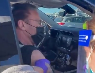 Бившият губернатор на Калифорния написа в Туитър: „Днес бе добър ден. Никога досега не съм бил толкова щастлив, докато чакам на опашка. Ако подлежите на имунизация, присъединете се към мен и се запишете за ваксина. Елате с мен, ако искате да живеете!“