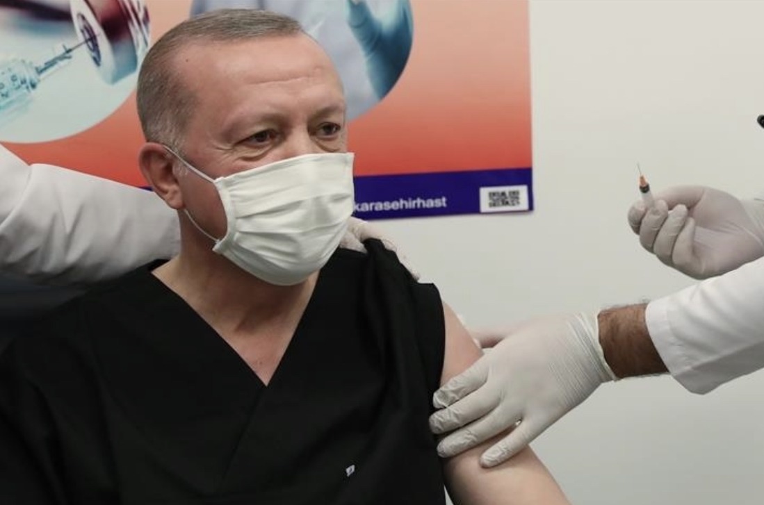 Ердоган получи първа доза ваксина срещу коронавируса на 14 януари. Тогава той призова турските граждани да се ваксинират, като той самият се ваксинира в градската болница на столицата Анкара пред телевизионни камери на живо.