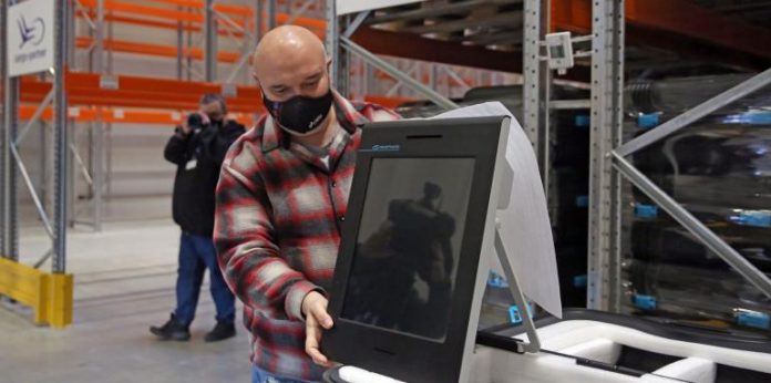 Първите машини за гласуване пристигнаха в България, съобщи Би Ти Ви. Днес за първи път бяха показани част от устройствата. До края на февруари у нас ще бъдат доставени всички машини за гласуване на парламентарните избори. Във временния склад в момента на стелажите са над 600 бройки.