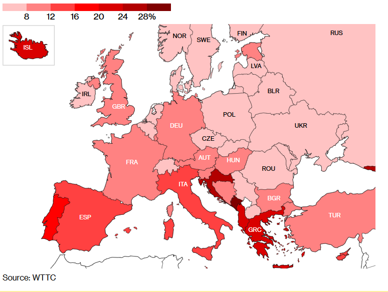 Туризмът е от решаващо значение за много места в Южна Европа. Той представлява 21% от икономиката в Гърция и 17% в Португалия. Често е основният работодател в региони, в които липсват други индустрии, като осигурява решаващ доход за семействата и подкрепа за местните икономики.