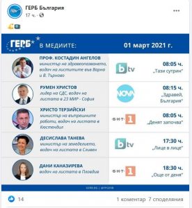 Масово присъствие на управляващите в телевизионния ефир – на това станаха свидетели зрителите в първия мартенски ден, броени дни преди официалния старт на предизборната кампания. „Рекламата” на властта не остана незабелязана и в социалните мрежи, където се надигна негодувание