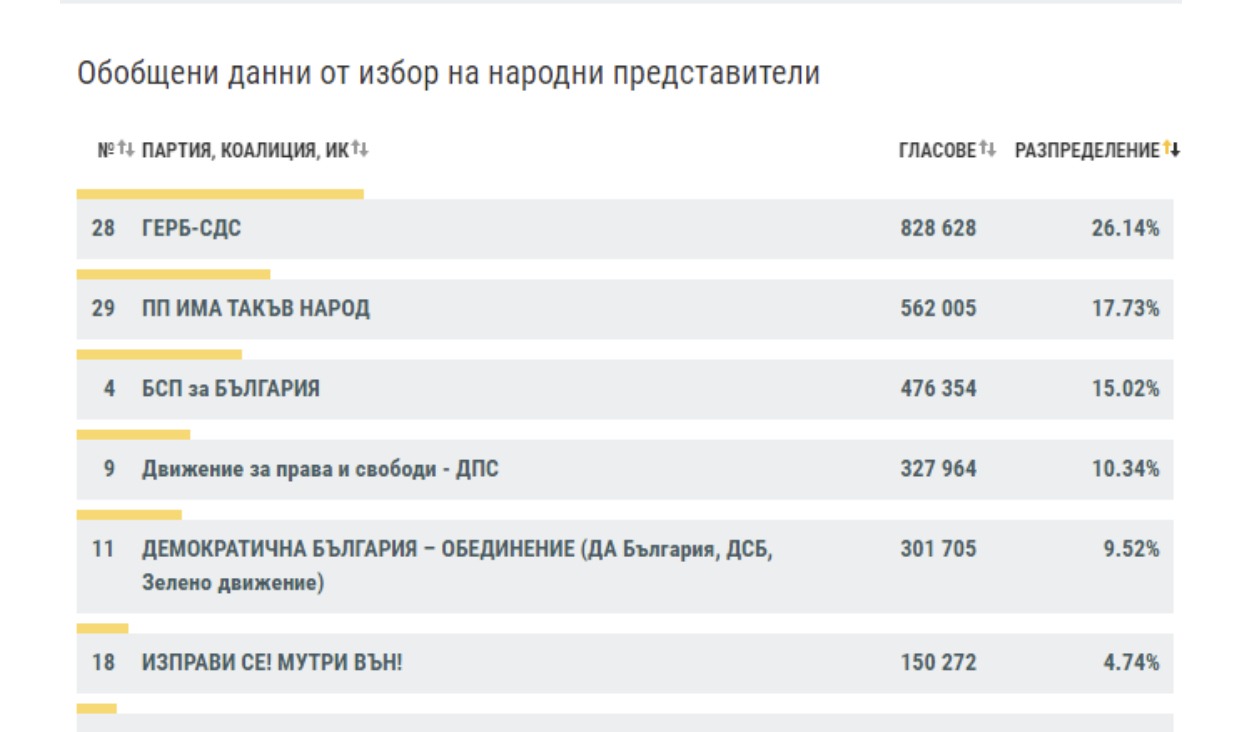Под чертата от 4% остава ВМРО с резултат от 3,65%.
