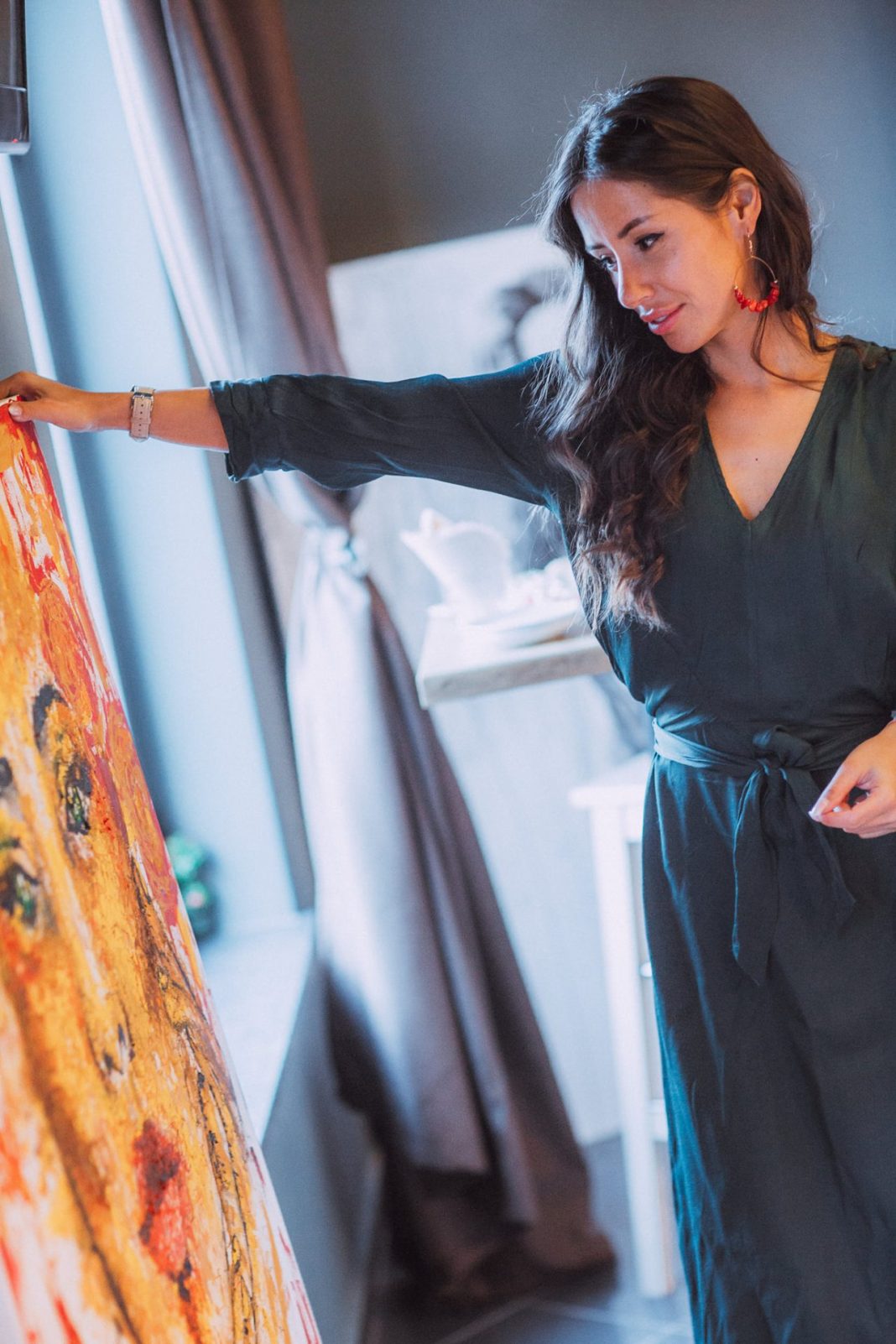 Картините изобразяват женски лица, силуети и танц в най-чувствената си форма. Георгия я нарича “усещане”, защото се стреми да провокира усещане у зрителя за нейното усещане, пренесено в картината. Всяка една от картините събужда усещане за нежност, надменност, бунтарство, его, страст. Различни образи с различни настроения. Две от произведенията не са рисувани със стандартните способи като четка или молив, а са завършени с различна и оригинална техника –боя и капачка. Това може да се забележи в релефа и детайлите на произведенията. По смелите щрихи и замах, които се забелязват във всяка една картина, може да се усети страстта на автора по време на изобразяването им. Това е първата й изложба.
