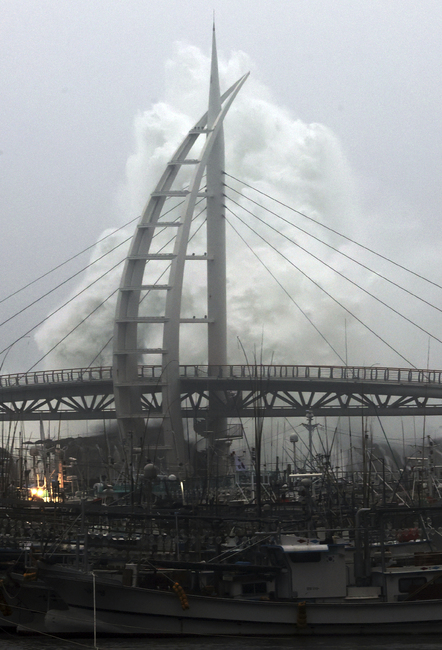 От неделя насам бурята изсипа над 94 сантиметра дъжд в централната част на Чеджу, където ветровете достигнаха скорост от 155 километра в час.