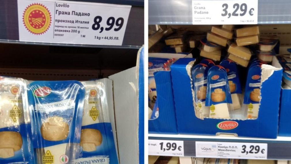 Холандската отлежала Гауда в разфасовка от 450 грама у нас струва 9,99 лв., а в Гърция цената е 3,75 евро. Става въпрос за една и съща фирма производител, еднакъв срок на зреене на гаудата и за едни и същи разфасовки, но в България цената е с 36% по-висока. Още по-голяма е разликата в цените на сиренето Грана Падано, което у нас се продава по 8,99 лв. за разфасовка от 200 кг. Абсолютно същото сирене в Гърция е 3,29 евро. У нас цената му е с близо 40 на сто по-висока.