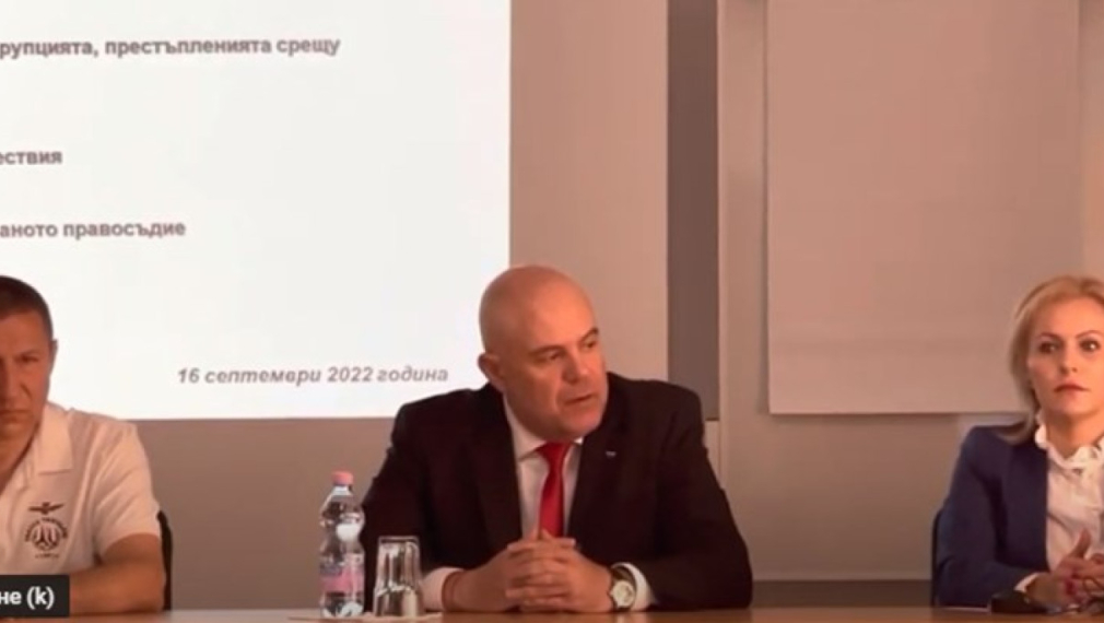 Главният прокурор Иван Гешев откри Общото събрание на административните ръководители в прокуратурата. До него е зам. шефът на прокуратурата и началник на НСлС Борислав Сарафов и говорителя на главния прокурор Сийка Милева