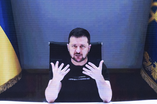 Той направи видеообръщение пред участниците в годишната среща на Световната банка и Международния валутен фонд (МВФ) във Вашингтон и поиска близо 55 милиарда долара. От тях 38 милиарда са необходими за покриването на бюджетния дефицит за следващата година, а 17 милиарда – за да започне възстановяването на критична инфраструктура.