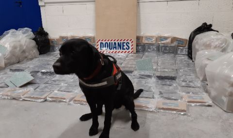 При претърсването със специално обучено куче е „установено наличието на 578 кг кокаин, опакован в пакети, подредени в палети сред легалния товар от фаянсови плочки, съобщи прокуратурата.