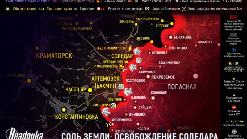 Ако говорим за тактическите възможности, които се откриват след овладяването на Соледар, тогава, както отбелязва Бартош, обкръжението на Артьомовск се предполага на първо място и в два пръстена – вътрешен и външен. Необходимо е да се отсекат възможните вражески сили, които „ще се опитат да разбие обкръжението около разположените там сили на ВСУ“.
