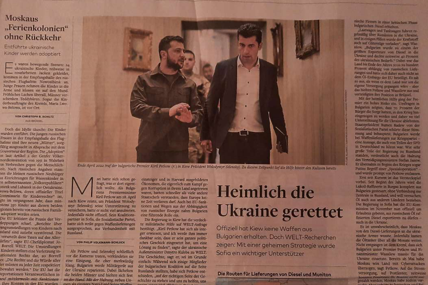 Тайното спасение на Украйна – така германският вестник „Ди Велт“ е озаглавил свое разследване, според което България е доставила една трета от оръжията на Украйна през изминалата година.