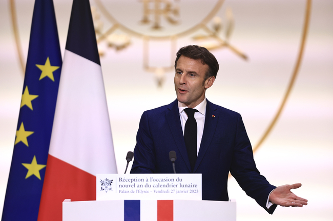 „Всички наши страни трябва да отстояват една позиция – тази на зачитането на суверенитета и на териториалната цялост… независимо какви приятелства или съюзи поддържат“, каза Макрон на прием в Елисейския дворец по случай Нова година по лунния календар. Той добави, че макар да е упрекван, че говори с Русия, ще продължи този диалог.