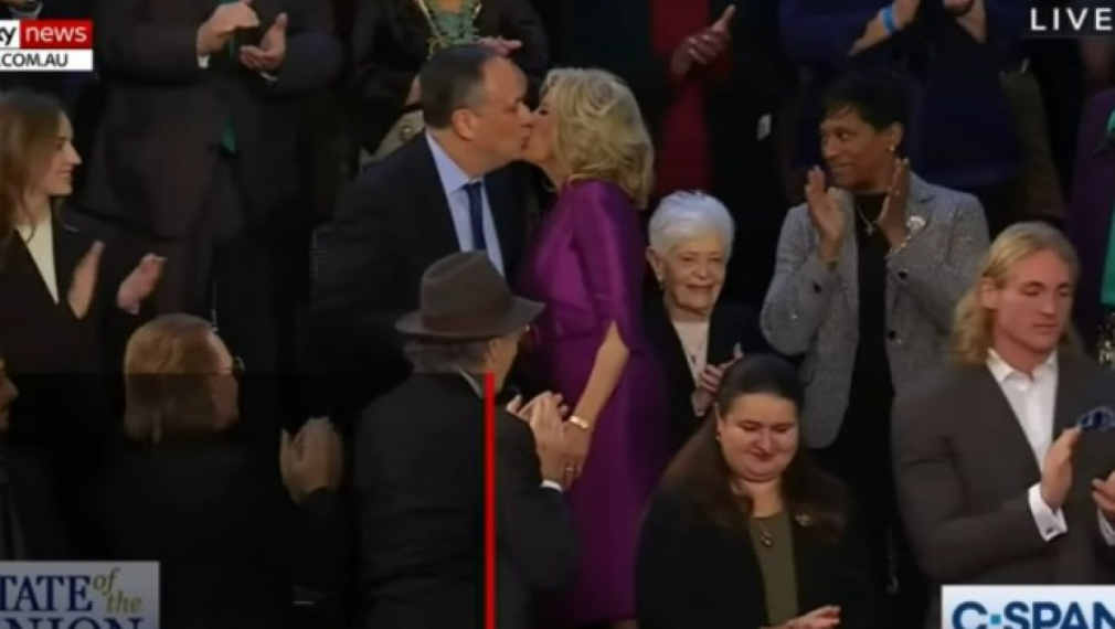 Целувка между първата дама на САЩ Джил Байдън и съпруга на вицепрезидентката Камала Харис нажежи социалните мрежи, съобщи АФП. Това се е случило точно преди речта на Джо Байдън „За състоянието на съюза“. Многобройните присъстващи са останали изумени. Първата дама Джил Байдън е поздравила съпруга на Камала Харис Дъг Емхоф с целувка в ъгъла на устните.