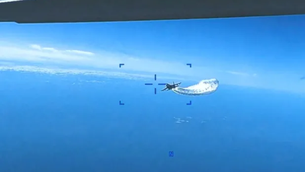 Военновъздушните сили на САЩ публикуваха видеозапис, запечатал момента на вчерашния сблъсък между руските изтребители Су-27 и американския дрон MQ-9 „Рийпър“.