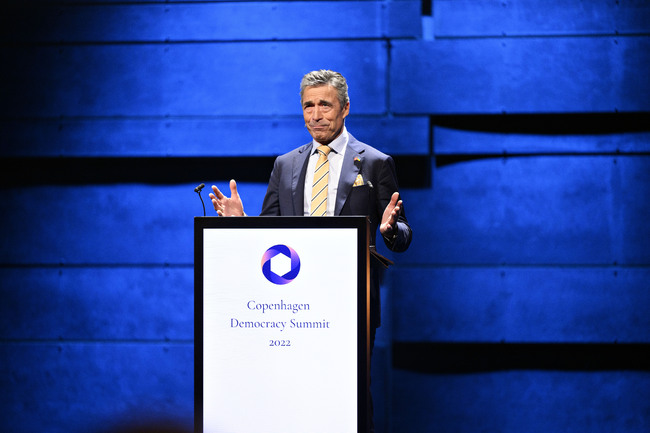 Организацията на Расмусен отново е домакин на двудневната среща на върха за демокрация в Копенхаген, която започва в понеделник. Тя ще бъде посветена на конфликтите и състоянието на демокрацията по света.