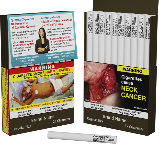 Предупрежденията ще бъдат изписани на английски и френски език и ще включват послания като: „отрова във всяко дръпване“, „тютюневият дим вреди на децата“ и „цигарите причиняват импотентност“.