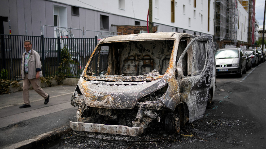 В същото време засиленото полицейско присъствие в центъра на Париж изглежда е възпряло протестите. Големи тълпи се събраха за погребението на 17-годишния Наел, убит в автомобил от полицай след отказ от проверка.