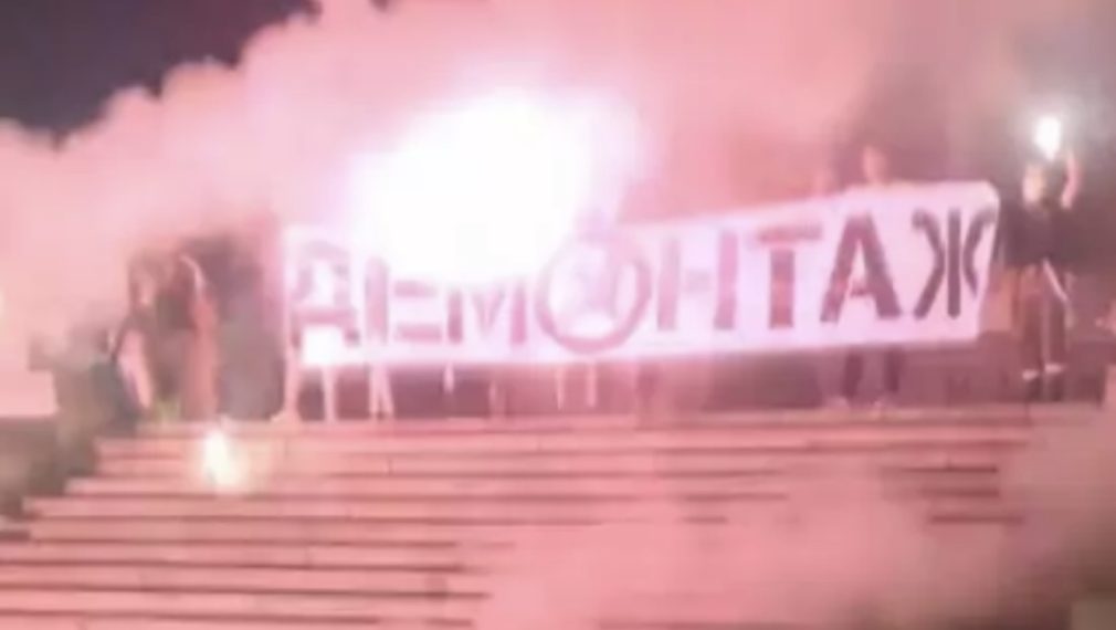 „Дойдоха около 20-30 човека от агитката на ‘Левски“, повечето с маски, извадиха спрейове, боксове, чук, с който започнаха да чупят надписа, започнаха да хвърлят запалителни елементи- димки, факли по нас… и аз не разбрах точно. Всичко стана за минута- две. Успях да снимам само края“, пише във фейсбук Геновева Кръстева и прилага видео от атаката.