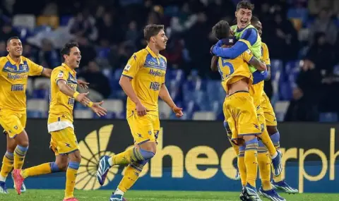 Новакът в Серия “А” Фрозиноне разгроми по неочакван начин шампионите от Наполи с 0:4 на “Диего Армандо Марадона” снощи в 1/8 финален двубой за Копа Италия. До категоричната победа се стигна след тотален погром на терена и необяснимо слаба игра от страна на “партенопейците”, след като от Фрозиноне отправиха цели 8 точни удара във вратата на Пиерлуиджи Голини, от които 4 бяха в мрежата му.