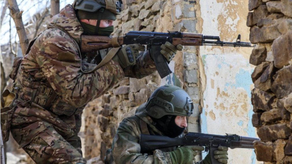 Министерството на отбраната на Русия публикува кадри от щурмови операции с участието на военнослужещи от гвардейския мотострелкови полк на Южния военен окръг в района на село Работино, Запорожка област.