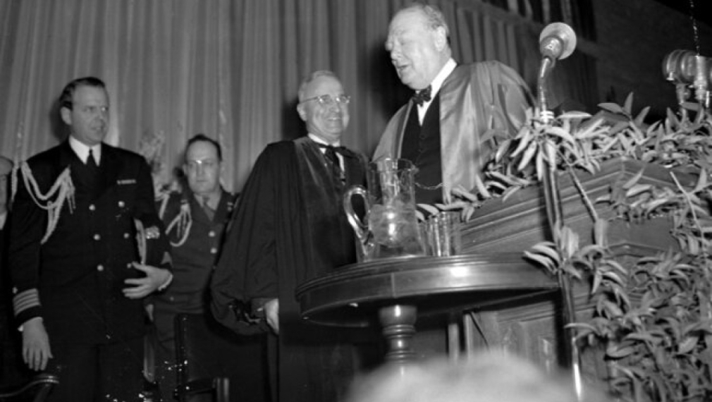 Чърчил произнася реч в Уестминстърския колеж в града, която се свързва с началото на т. нар. Студена война. Цялата реч е посветена на тогавашната международна обстановка. С нея той прави популярен термина „желязна завеса“, макар че метафората е използвана и преди това – например от Василий Розанов в книгата му „Апокалипсисът на нашето време“ (1918 г.), а по-късно и от Гьобелс (Das Jahr 2000,” Das Reich, 25 February 1945).