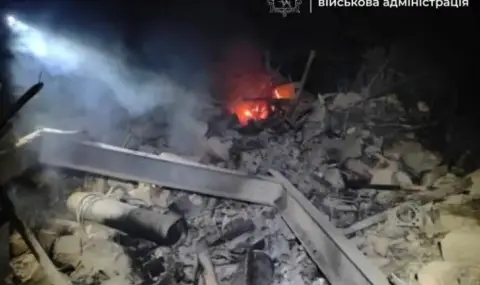 Русия нанесе въздушен удар срещу жилищен квартал и разруши складове, при което бе ранен най-малко един човек, съобщи тази сутрин областната военна администрация на Сумска област.